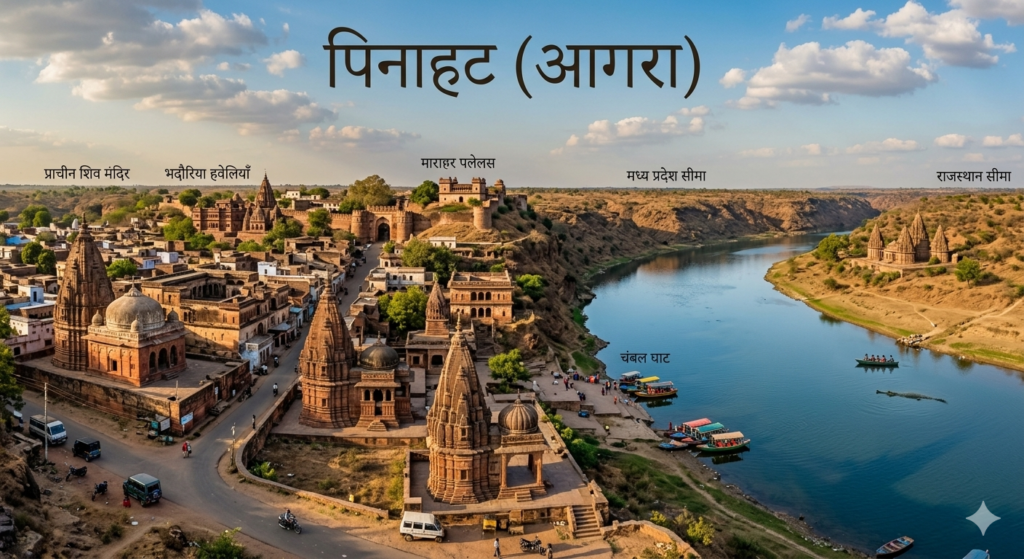 पिनाहट उत्तर प्रदेश के आगरा जिले का एक अत्यंत महत्वपूर्ण और ऐतिहासिक कस्बा है, जो चंबल नदी के किनारे बसा हुआ है। यह स्थान न केवल ऐतिहासिक दृष्टि से बल्कि प्राकृतिक और धार्मिक रूप से भी अपनी एक अलग पहचान रखता है। पिनाहट का इतिहास राजा भदावर (भदौरिया राजपूतों) के शासनकाल से जुड़ा है, जिन्होंने यहाँ कई मंदिरों और किलों का निर्माण करवाया था। चंबल की बीहड़ों और घड़ियाल संरक्षण केंद्र के करीब होने के कारण इसे प्रकृति प्रेमियों के लिए स्वर्ग माना जाता है। यहाँ का “बटेश्वर धाम” पास होने के कारण यह क्षेत्र आध्यात्मिक ऊर्जा से भी ओतप्रोत है।