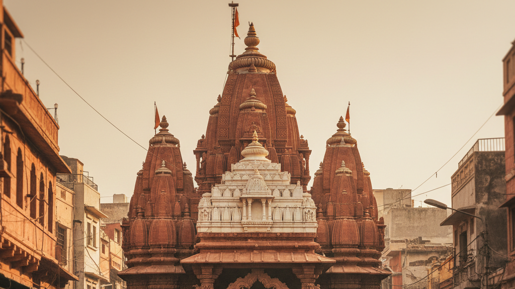 • बाहरी हिस्सा (Exterior) :– मंदिर का प्रवेश द्वार संकरी गलियों के बीच स्थित है, जो पुराने शहर की रौनक को दर्शाता है। मंदिर का शिखर पारंपरिक हिंदू शैली में बना है और दूर से ही दिखाई देता है।