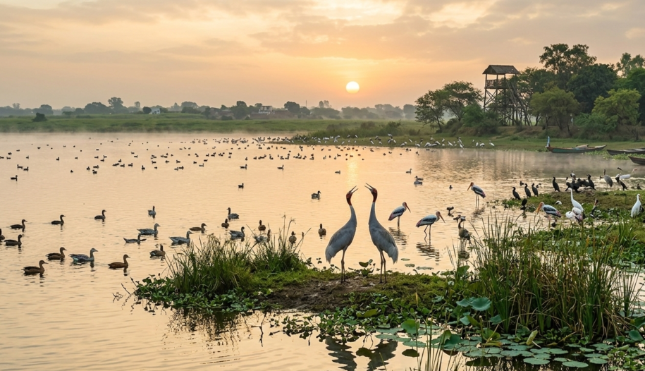 3. इसे ‘पक्षियों का स्वर्ग’ कहा जाता है क्योंकि यहाँ ‘बार्न आउल’, ‘सारास क्रेन‘ और ‘ग्रेटर फ्लेमिंगो‘ जैसे दुर्लभ पक्षी देखे जा सकते हैं।